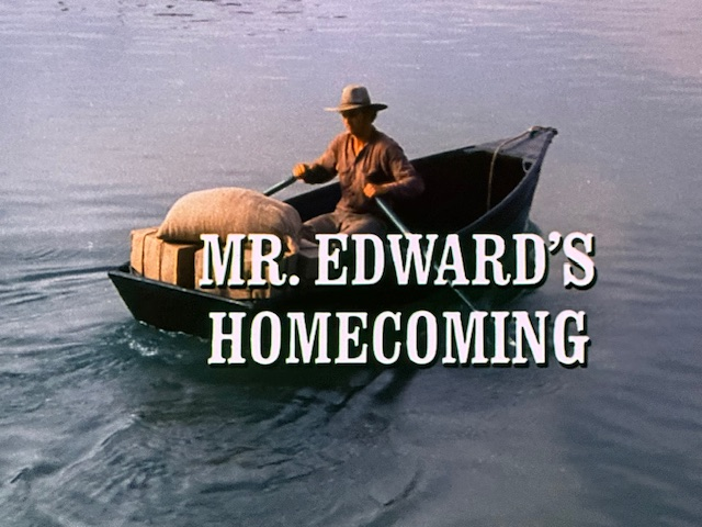 The widow invites Mr. Edwards to join him for church, and he tells her he doesn’t believe in church or god. Before you can say “deal breaker,” the widow tells him she can’t go fishing with him, and Mr. Edwards is on his way. He pauses to say that he can’t figure her out and that it shouldn’t make a difference if he’s not a church going man. That she liked him before she knew that.